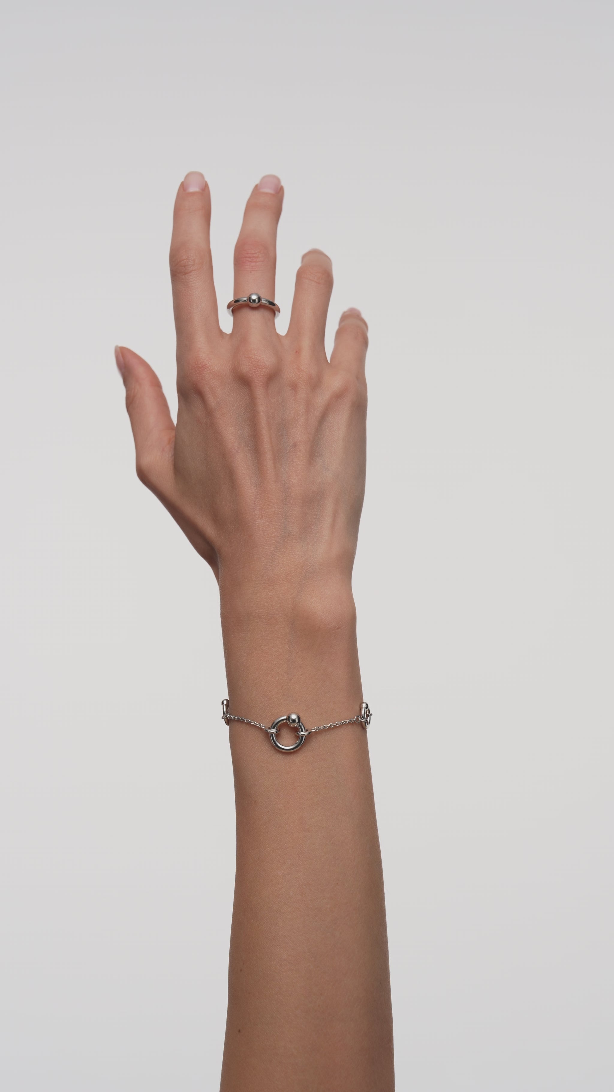 Браслет Harmony Silver з родієвим покриттям уособлює мінімалістичну естетику завдяки лаконічному дизайну з трьома пласкими колами — двома меншими та одним середнього розміру — розміщеними на витонченому ланцюжку. Гладкі форми створюють сучасний, динамічний настрій, а функціональна застібка T-bar додає стилю та зручності. Виготовлений з екологічної латуні, браслет ідеально підходить для тих, хто цінує стриману універсальну елегантність, що легко переходить від денного образу до вечірнього.