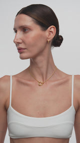 Кольє Flow Gold з покриттям 18K золотом — втілення стриманої елегантності. Витончений тонкий ланцюжок і виразний підвіс у вигляді плаского кола з центральною кулькою, натхненною пірсингом, створюють відчуття сучасної вишуканості. Регульована довжина дозволяє налаштувати посадку під ваш образ, а декоративна T-перемичка та застібка-карабін додають стильного, продуманого акценту. Виготовлене з екологічної латуні, це намисто ідеально підходить для нашарування або носіння соло — універсальна прикраса з позачасовим характером для будь-якої нагоди.
